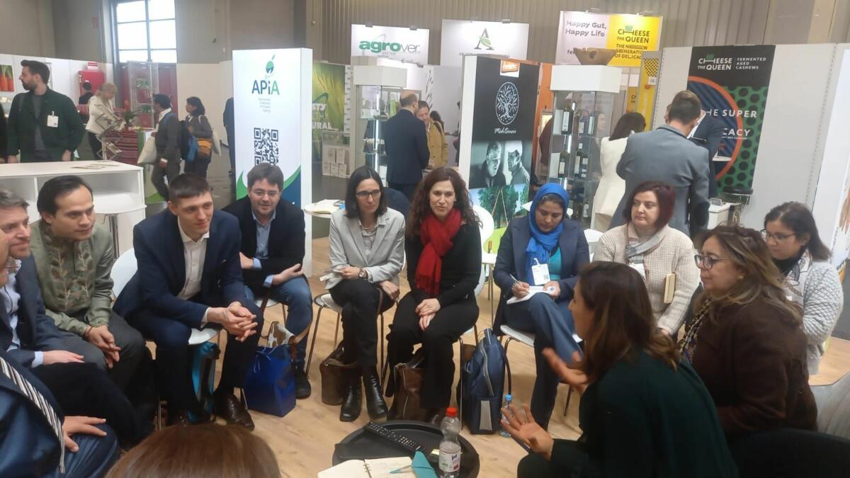 Mehrere Vertreter von Schweizer Organisationen besuchten den tunesischen Pavillon auf der Biofach, wobei der Besuch mehr Zeit in Anspruch nahm als erwartet: Silvan Hungerbühler, Programmleiter beim SECO, Martin Peter, stellvertretender Leiter der Abteilung Handelsförderung beim SECO, Alejandro Espinoza, Vertreter von IFOAM-Organics International und Leiter des OT4D-Programms, Andrea Bischof, Vertreterin von Helvetas und Exportleiterin des OT4D-Programms, Tobias Eisenring, Vertreter des FiBl und OT4D-Programmleiter. SIPPO und die tunesische Delegation wurden mit der Anwesenheit von Samia Maamer, Generaldirektorin der Bioabteilung des Landwirtschaftsministeriums, beehrt. Von APIA nahmen Jamal Farhad, Generalsekretär von APIA, und Mouna Chalghoum, Leiterin der Abteilung Messen von APIA, an dem Treffen teil.
