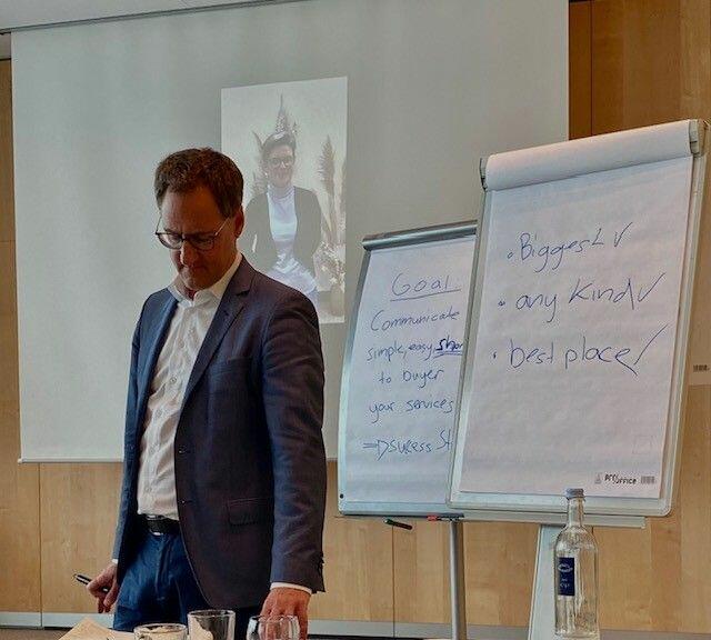 Um die BSO-Vertreter in ihren Kommunikationsanstrengungen gegenüber interessierten Käufern und zugunsten ihrer Dienstleistungen vorzubereiten und zu stärken, führte SIPPO auf der Interzum ein Elevator Pitch Training durch und arbeitete an der Schärfung der USPs der Dienstleistungen. Neben vielen anderen nahmen aus Indonesien Vertreter des Handelsministeriums (MoT) sowie die Handelsattachés aus Deutschland und der Schweiz teil, während aus Serbien der Leiter des Verbandes der Forst-, Holzverarbeitungs-, Möbel- und Papierindustrie der Privredna komora Srbije das Training besuchte. (Siehe den entsprechenden Beitrag in Englisch von Natasa Govedarica: (2) Posten | Feed | LinkedIn).