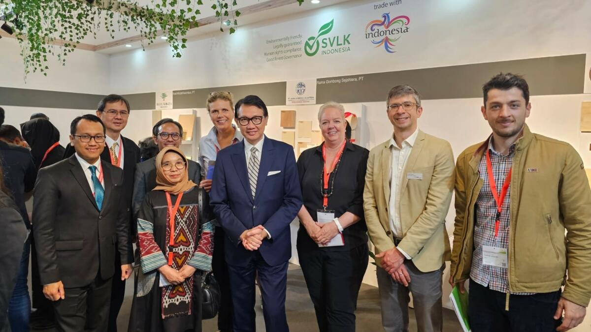 - Indonesien, Indonesia, Ministry of Trade (MoT): Das MoT unterstützte zusammen mit SIPPO Indonesien die teilnehmenden Unternehmen nicht nur während der Messe, sondern auch bei der Vorbereitung, und sie werden auch in der Nachbereitung mitwirken. Am 5. Mai2023 besuchte der indonesische Botschafter, Arif Havas Oegroseno, den indonesischen Länderpavillon und gab eine Einführung/Präsentation ins indonesischen Systems zur Zertifizierung legaler Holzexporte (SVLK). Weitere Einzelheiten stehen im Beitrag des Botschafters auf Twitter: Arif Havas Oegroseno (@havasoegroseno) / Twitter und im Beitrag des Export Promotion Managers von SIPPO Indonesien, Sutrisna Abhi: (2) "sutrisna abhi" | Suche | LinkedIn